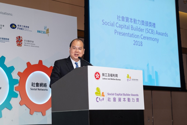 壓軸環節為社會資本動力獎頒獎禮,由政務司司長張建宗先生,GBS,JP蒞臨主禮,表揚卓越基金計劃、協作伙伴,以及對建立社會資本有重要貢獻的機構和人士。