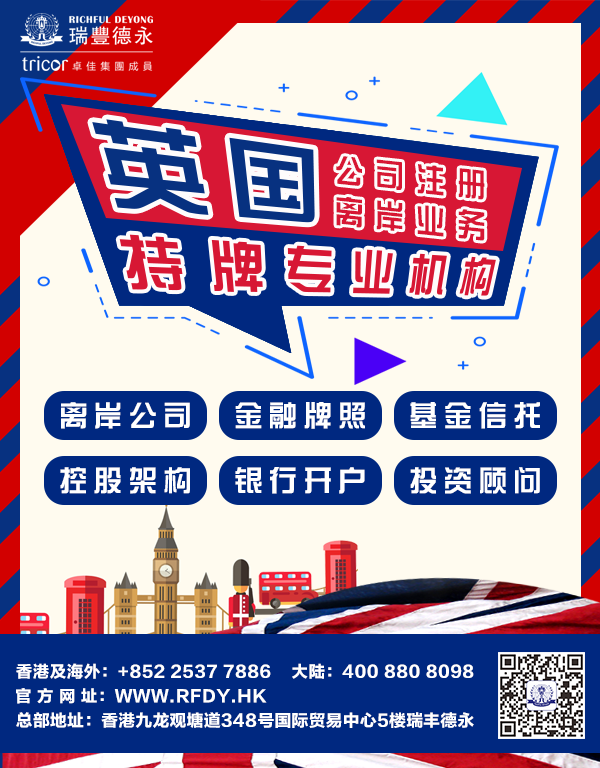 瑞豐德永(Richful Deyong)2008年始創于香港,系卓佳(Tricor)集團成員,是亞洲具有領先地位的專業服務機構,在全球21個國家/地區47個城市設有辦事處,擁有2500多名員工,服務超過30000客戶,1300間香港聯交所上市公司,500間新加坡和馬來西亞上市公司,名列財富雜志500強企業超40%及眾多跨國知名公司。