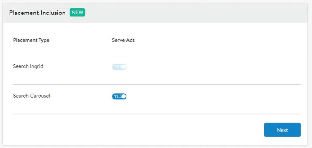第 5 步(僅適用于手動廣告):如圖5所示,利用選擇展示位置包含的新功能,選擇稱為Search Ingrid和Search Carousel的兩種展示位置類型。Search Ingrid默認開啟,無法關閉。Search Carousel是可選的,但強烈建議擴大覆蓋面,并且僅適用于基于關鍵字的廣告系列。此選項在搜索頁面上的搜索輪播廣告中展示產品。
