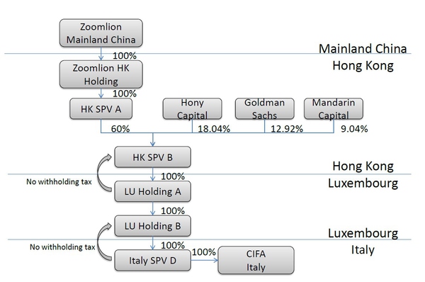 1. HK中有3個(gè)投資方進(jìn)入,Zoomlion HK Holding和 HK SPV B的存在確保了不管投資方如何變動(dòng),香港往上到中國和香港向下到盧瑟堡的結(jié)構(gòu)不會(huì)受影響。