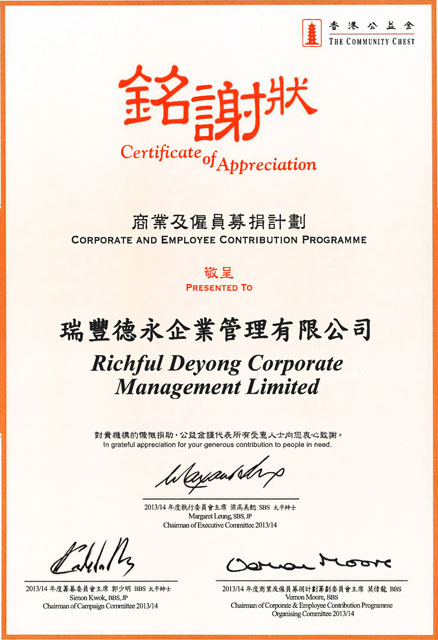 同時,瑞豐德永信守對社會的承諾,致力成為負責任的企業公民,通過多種形式為社會公益盡力。慈善、環保、義工服務、關懷員工是瑞豐履行社會責任的重點。