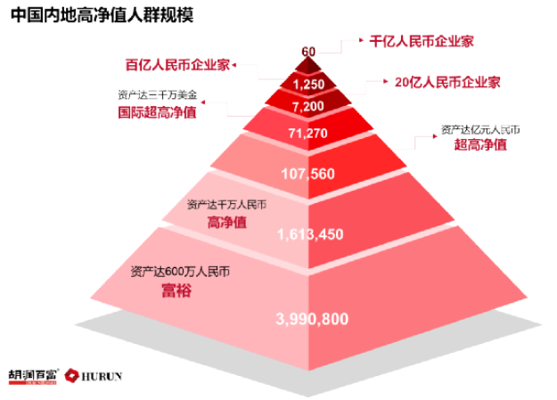 根據《2020胡潤財富報告》顯示,中國內地超高凈值人群規模,資產在億元人民幣以上的“超高凈值家庭”數量達35萬戶,當中,企業主的比例基本在60%以上,其余部分分別由企業高管、職業投資者組成,這些超高凈值人士的數量都呈現增長趨勢,保持在2%或以上的增速。